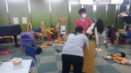若手劇団員達が小道具作りに明け暮れる中、稽古場でジャージにも着替えず台詞を覚える事も出来る!!